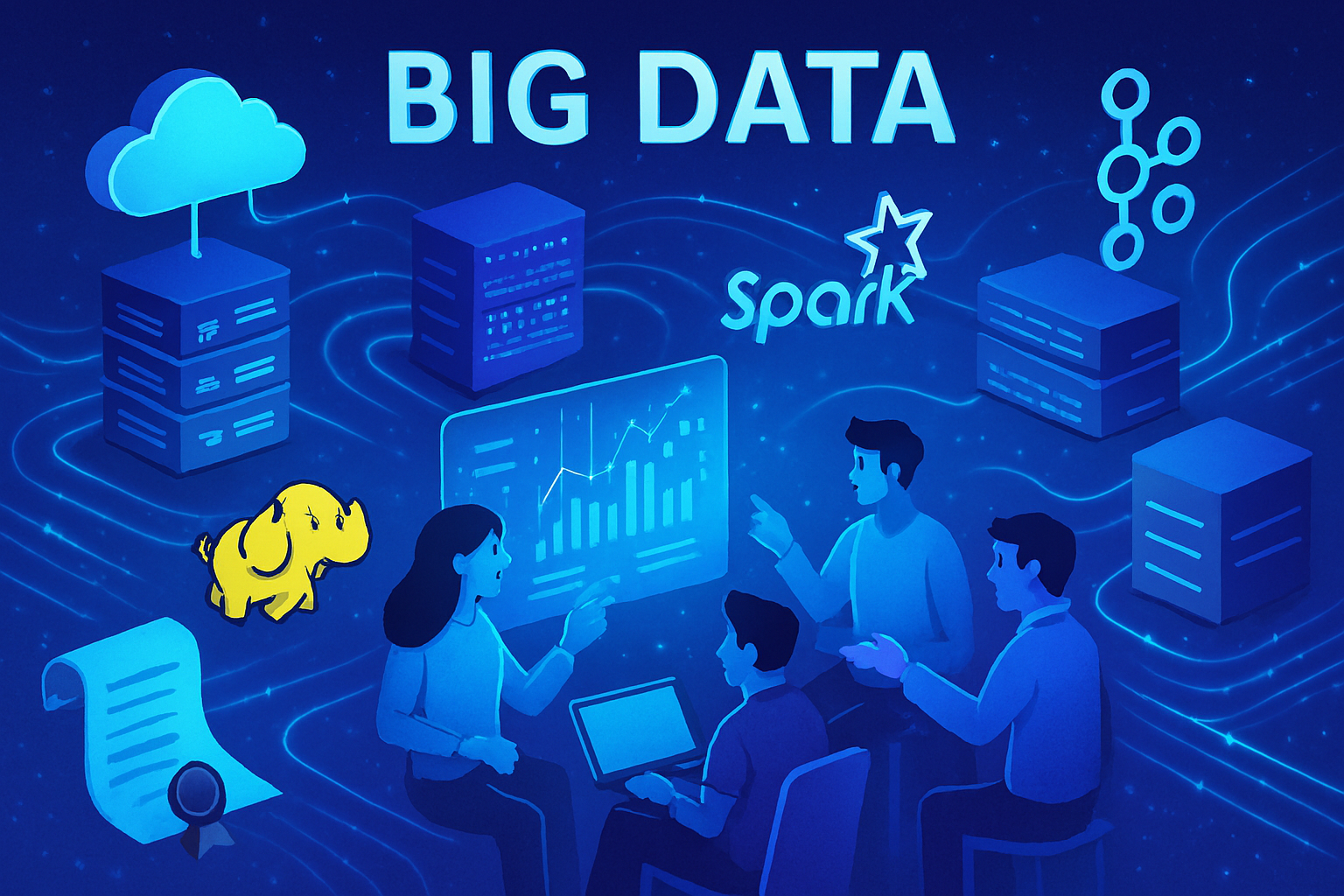 En esta asignatura se abordan las bases teóricas y prácticas referentes a cómputo en la nube, proveedores de servicios, fundamentos de Big Data, frameworks, modelos y técnicas para procesamiento masivo de datos, metodologías y tecnologías de almacenamiento distribuido, e implementación de soluciones de Big Data.